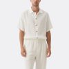 Men’s Beige Casual Summer Suit Turn Down Collar Shirt & Loose Trousers