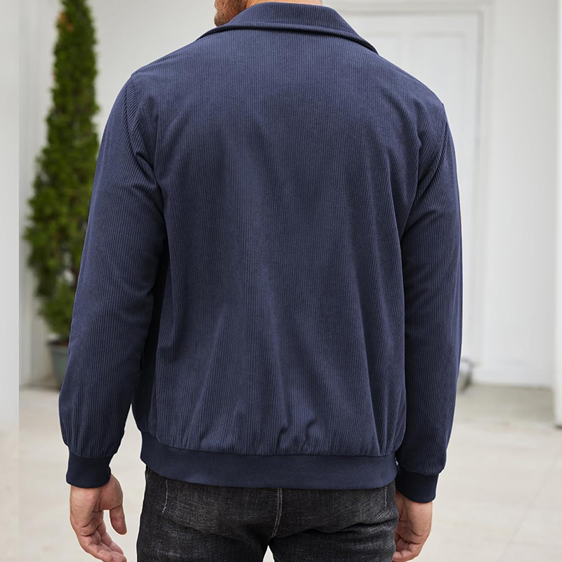 With a zipper closure and lapel design, this corduroy jacket is both casual and suitable for formal occasions, with a vintage look and comfortable feel.