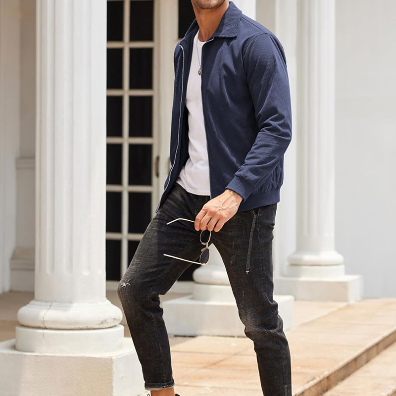 Casual Vintage Style: Corduroy jackets are a fashion must-have that can be matched with any outfit. Perfect for layering, pair it with a T-shirt and jeans in spring and autumn, and pair it with a light sweater and boots in winter. This easy-to-match lightweight men’s jacket is suitable for all seasons.
