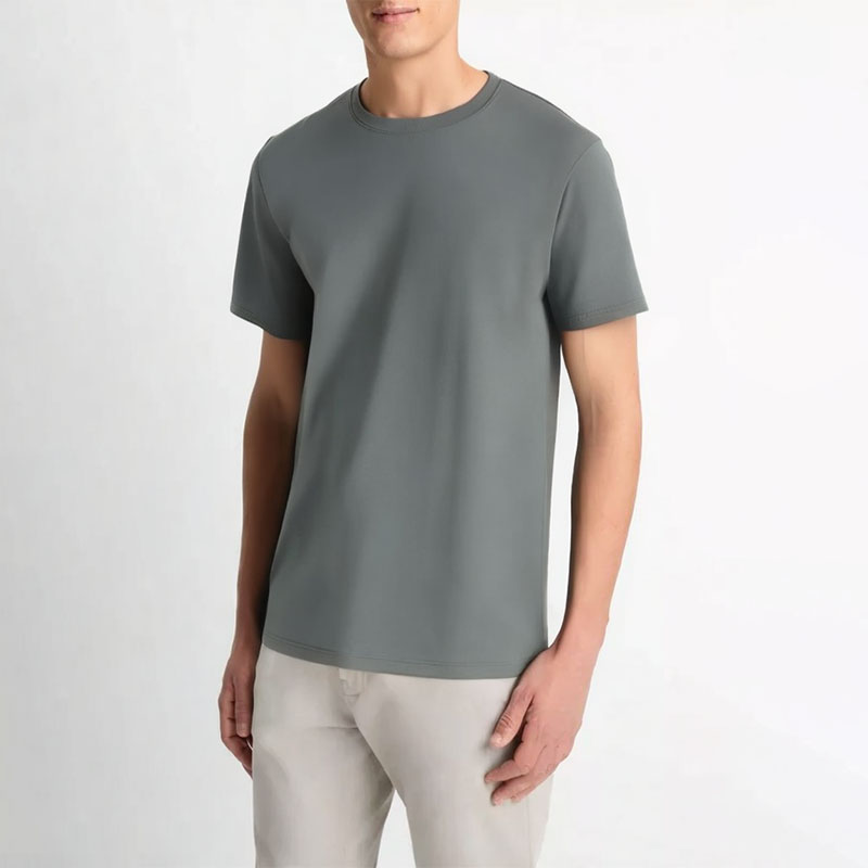 Men’s crew neck T-shirts are made of breathable, soft, skin-friendly and highly stretchable cool yarn fabric, which makes you comfortable and energetic all day long. Experience unparalleled comfort – a must-have in your wardrobe.