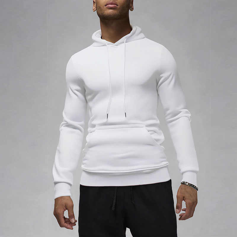 Men’s Fashion White Hoodie Casual Pullover Hoodie