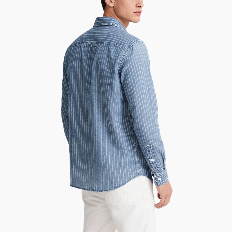 Men’s Fashionable Striped Long-Sleeved Denim Shirt