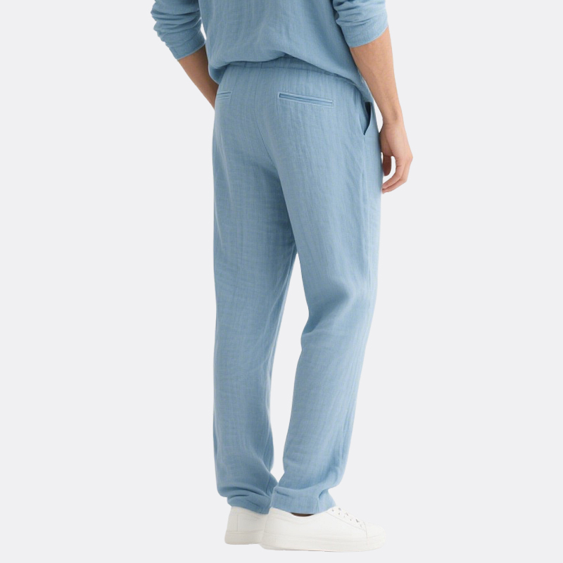 Straight-Leg Pants: Effortless crease-resistant fabric drapes smoothly, featuring a versatile straight cut that moves with you—ideal for lounging, strolling, or light outings.