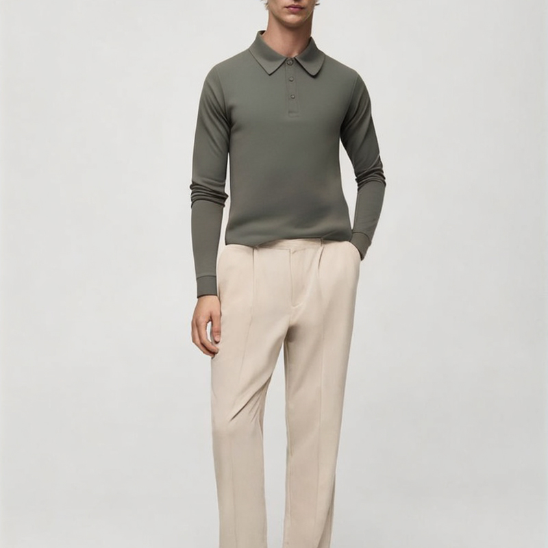 Men’s Long Sleeve Lapel Collar Shirt Sports Casual Business