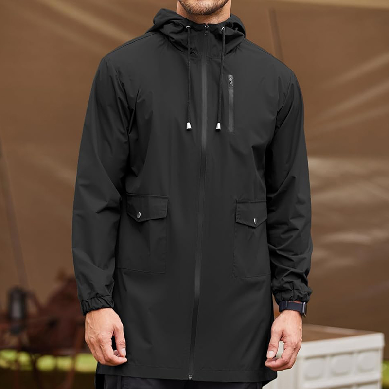 • Design: The jacket features a hood, drawstring, full zipper closure, and a mid-length long-sleeved jacket suitable for all seasons.