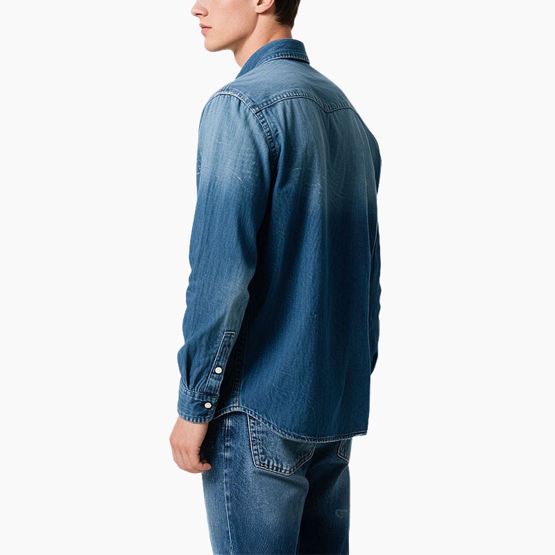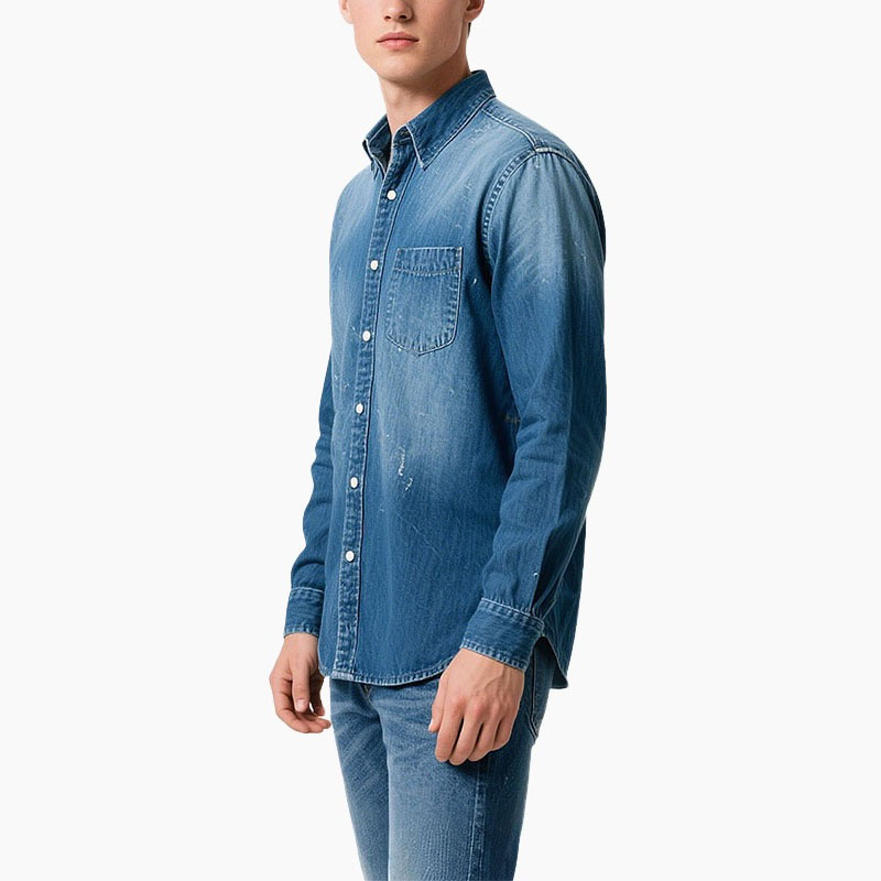 This men’s long-sleeved denim shirt perfectly combines classic style with modern design, and is an indispensable fashion item in your wardrobe.