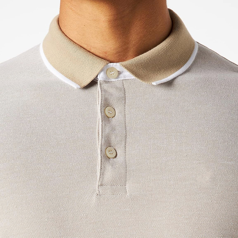 The contrasting stripes on the collar, placket and cuffs increase the overall visual effect and layering, making the clothes more dynamic and attractive.