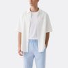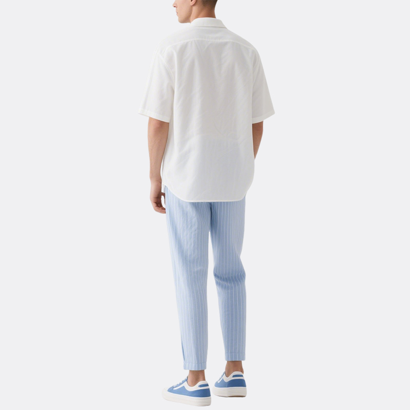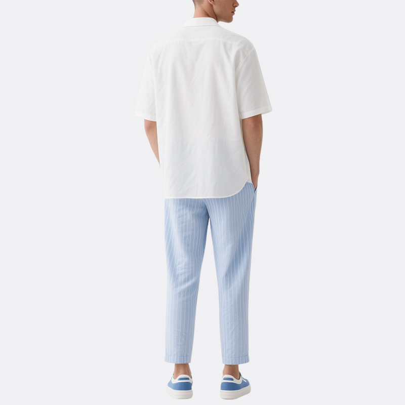 White Short-Sleeve Shirt: Soft, relaxed fit with a classic collar, front button placket, and chest pocket for effortless elegance.