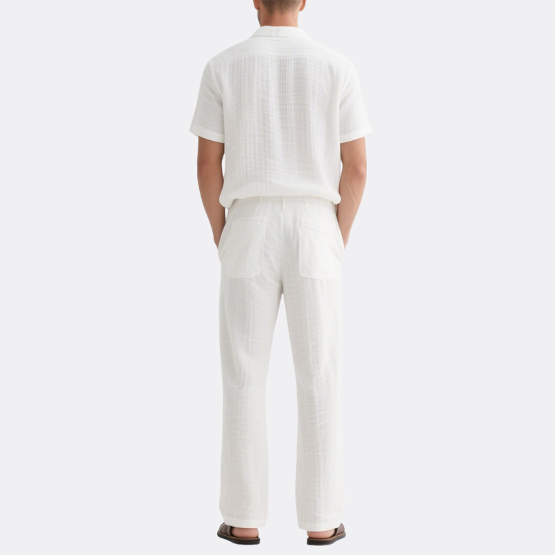 Lightweight Fabric: Crafted from a premium linen-cotton blend, this set feels cool and airy, wicking moisture to keep you fresh all day.