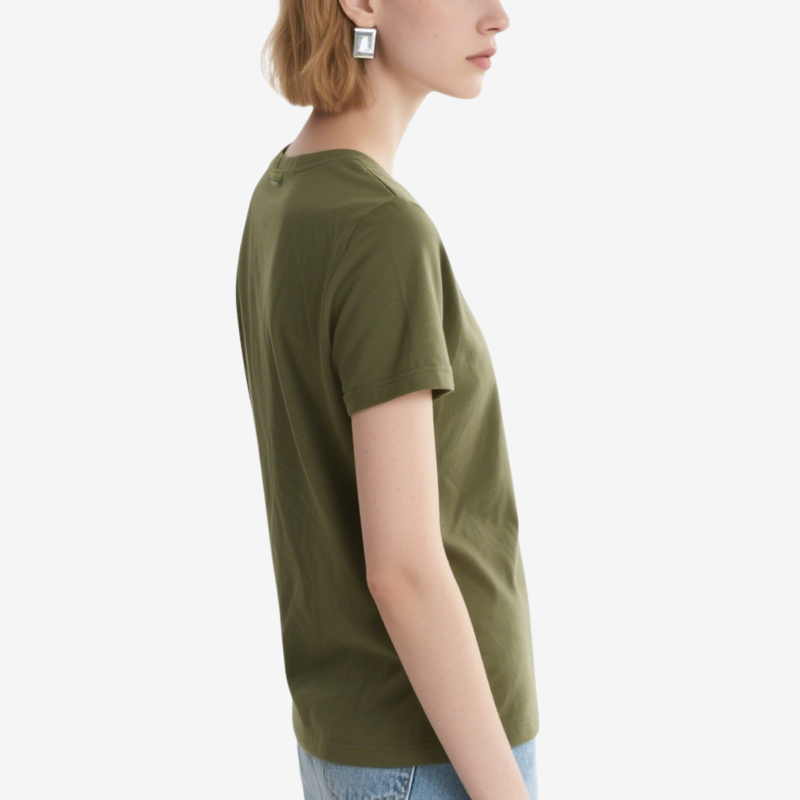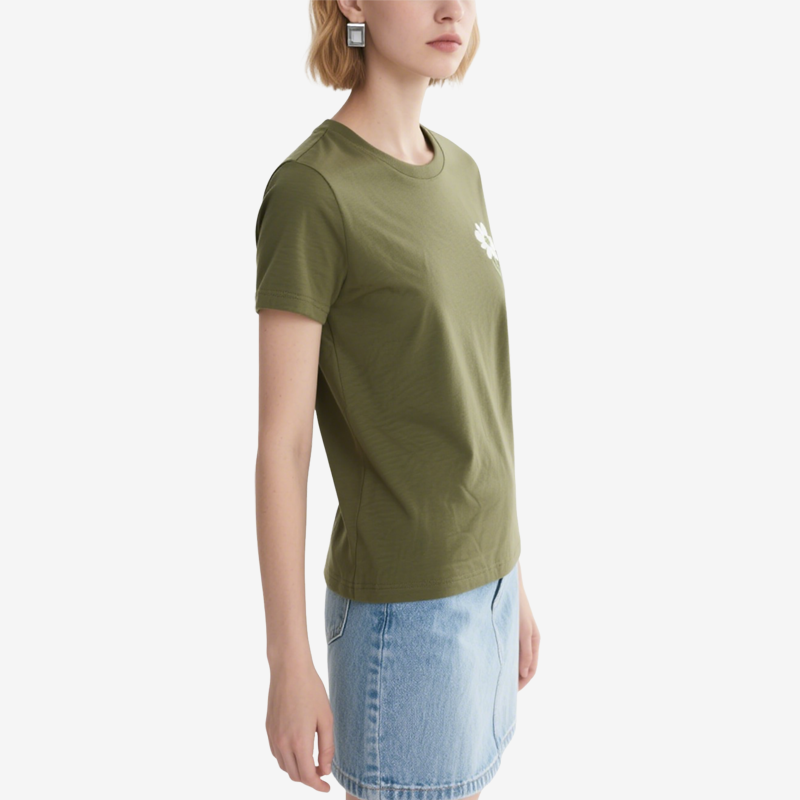 Military Green Daisy Embroidered Short-Sleeved T-Shirt
