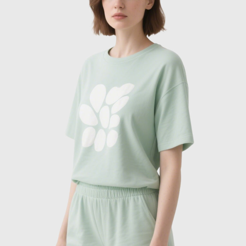 Mint Green Floral Tee & Shorts Set Women’s Summer Activewear