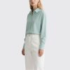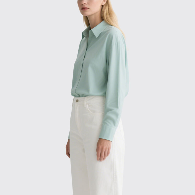 Mint Green Women’s Button Down Shirt Long Sleeve Plain Casual Top
