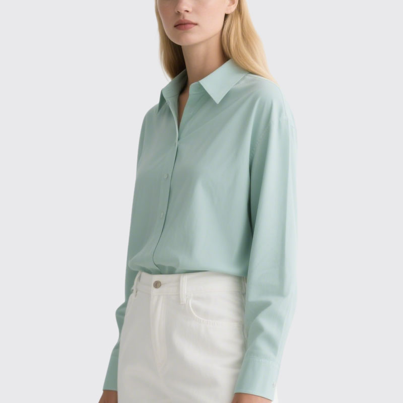 Classic Button – Down Silhouette: Features a crisp collar and a tailored fit that flatters various body shapes. The timeless design ensures it never goes out of style, making it a reliable wardrobe staple.