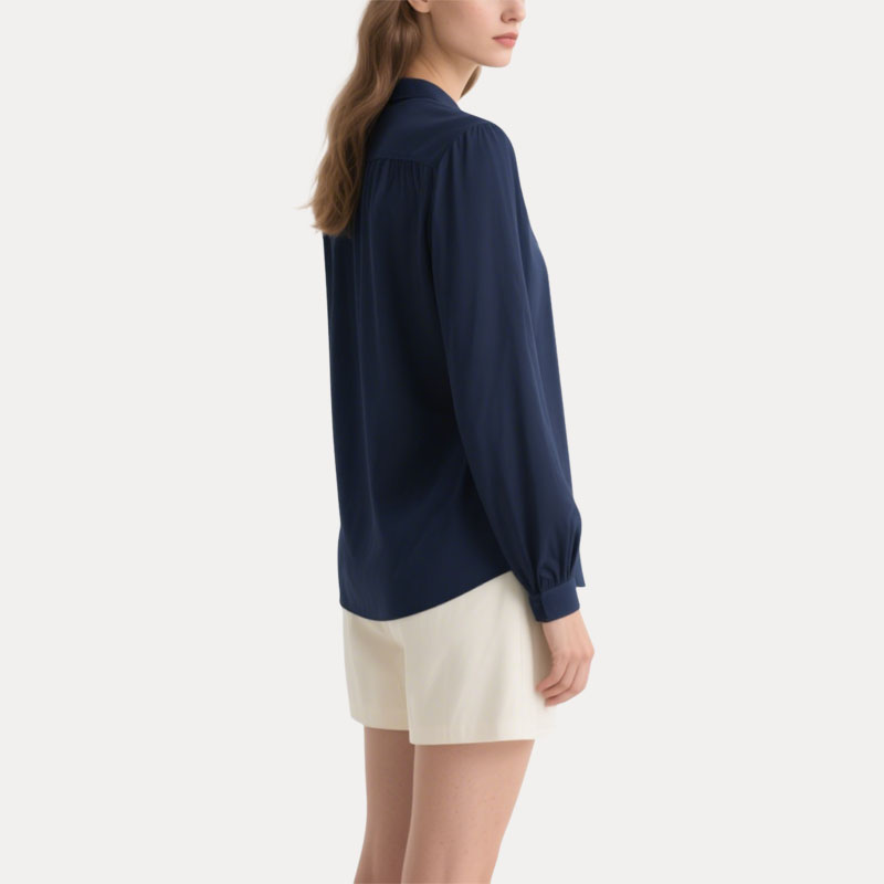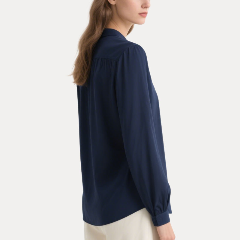 Classic Button – Down Silhouette: Features a crisp collar and a tailored fit that flatters various body shapes. The timeless design ensures it never goes out of style, making it a reliable wardrobe staple.