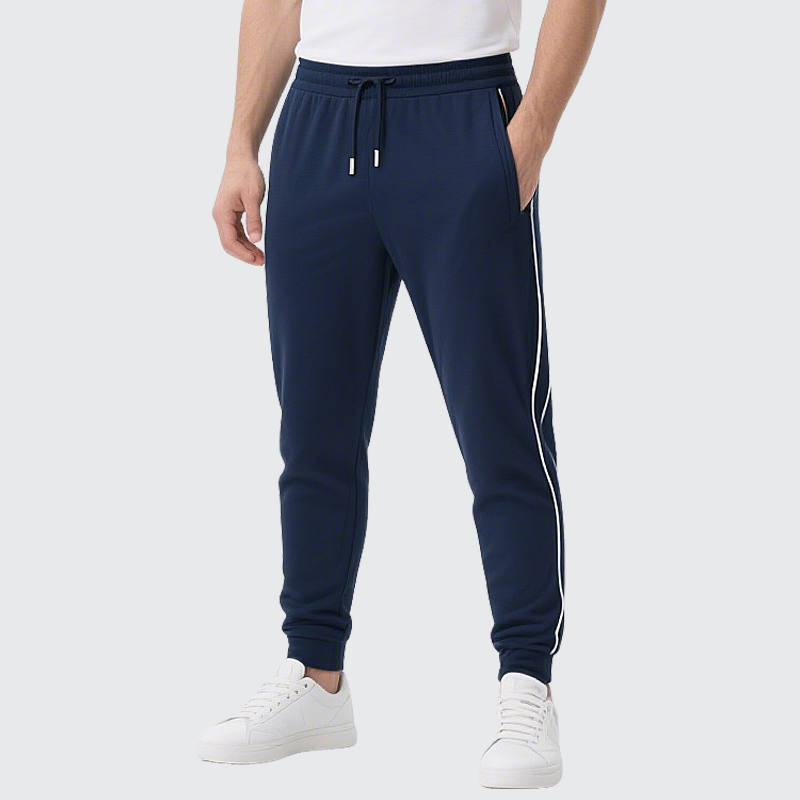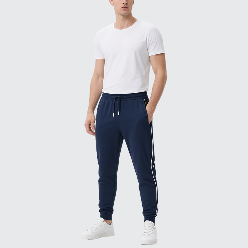 Navy Men’s Jogging Pants with White Piping Slim Fit Gym & Lounge Trousers