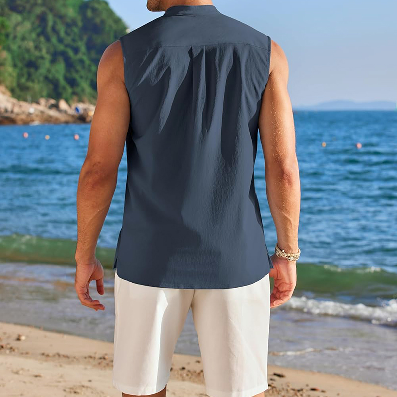 - Buttons, adjustable round neck or V-neck, sleeveless, solid color design are often used, the overall shape is simple, suitable for various daily collocation.