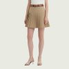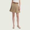 A modern twist on classic prep. This pleated khaki mini skirt features a structured silhouette with a removable faux leather belt for added edge and versatility.