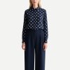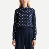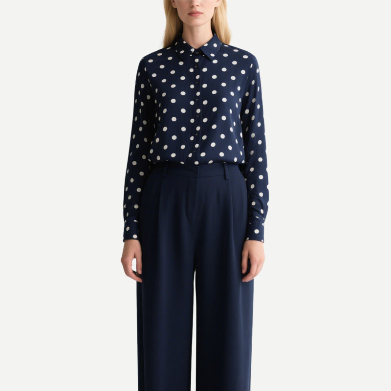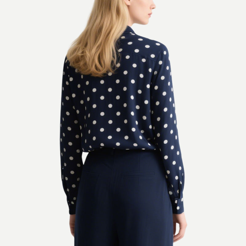 Polka Dot Navy Blue Women’s Shirt Long Sleeve Button Up Blouse