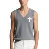 Popular Embroidered Cross Pattern Men’s V-Neck Knitted Vest