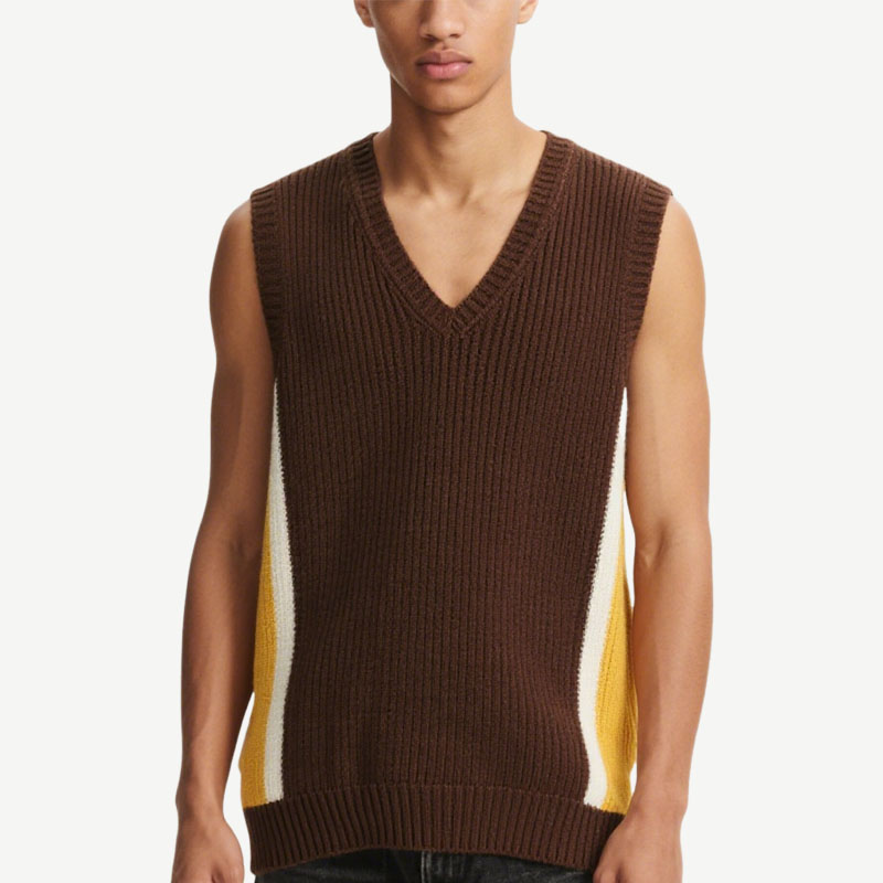Retro Contrast Side Stripes Men’s V-Neck Knitted Vest