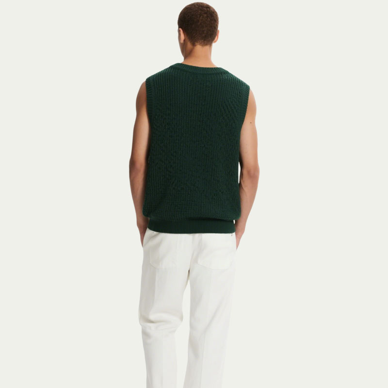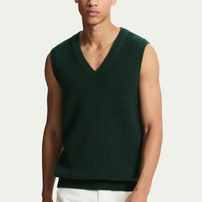 Retro Dark Green Men’s V-Neck Knitted Vest