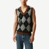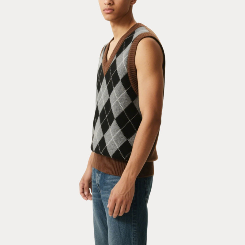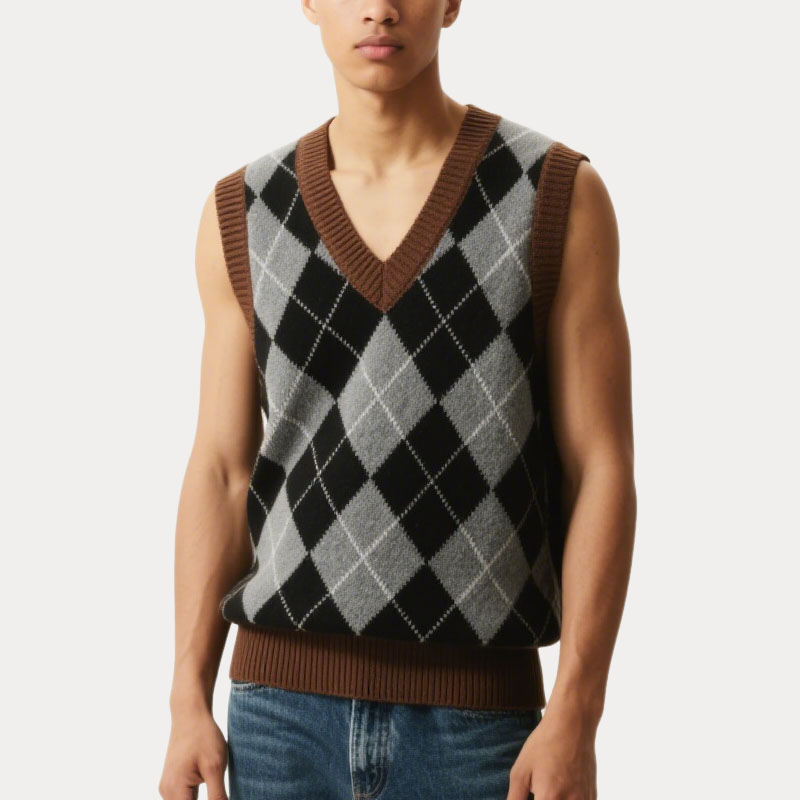 Retro Diamond Pattern Contrast Edge Men’s V-Neck Knitted Vest