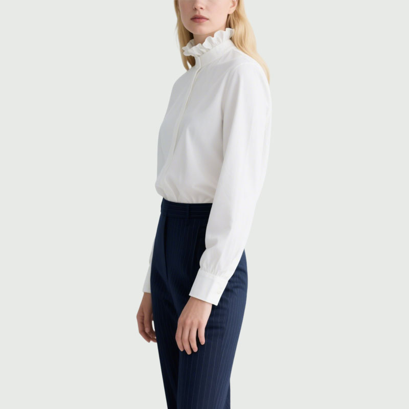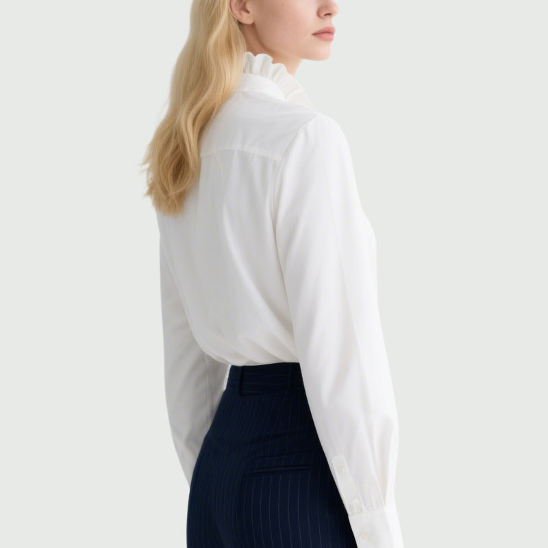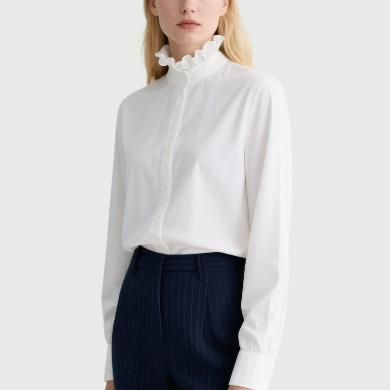Classic Button – Down Silhouette: Features a crisp collar and a tailored fit that flatters various body shapes. The timeless design ensures it never goes out of style, making it a reliable wardrobe staple.