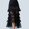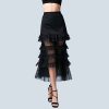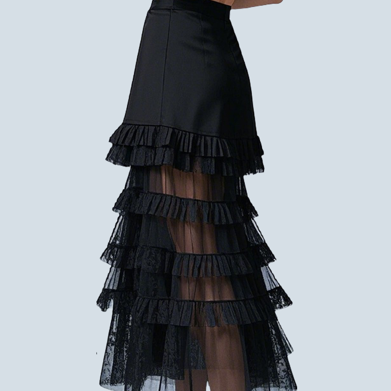 The skirt is crafted from high – quality materials. The main part is made of a durable polyester blend fabric that offers a sleek look and comfortable fit. The lace used in the lower layers is a fine – quality nylon blend, which is soft to the touch and has good elasticity.