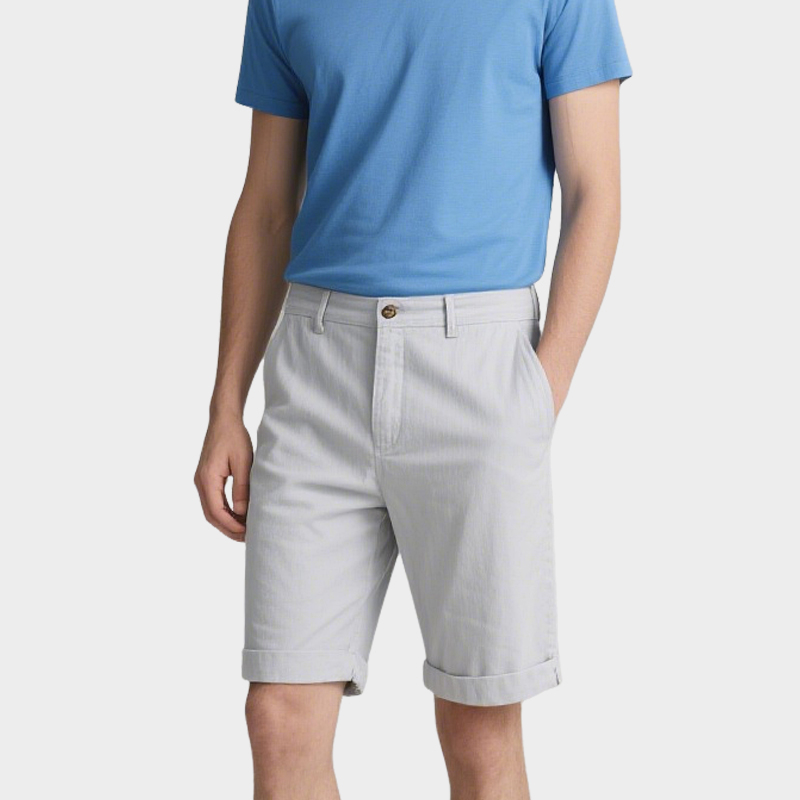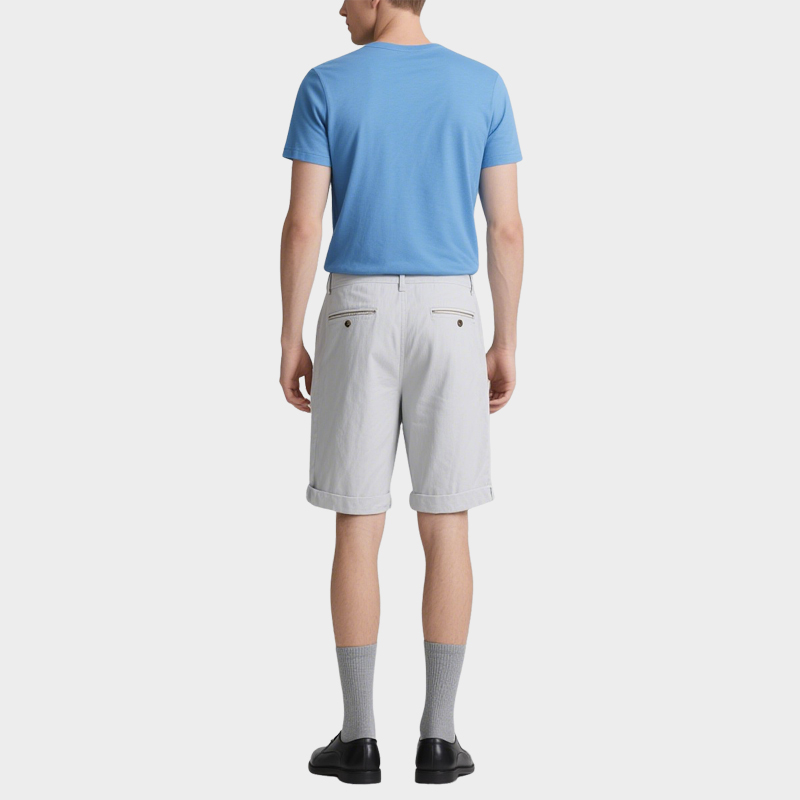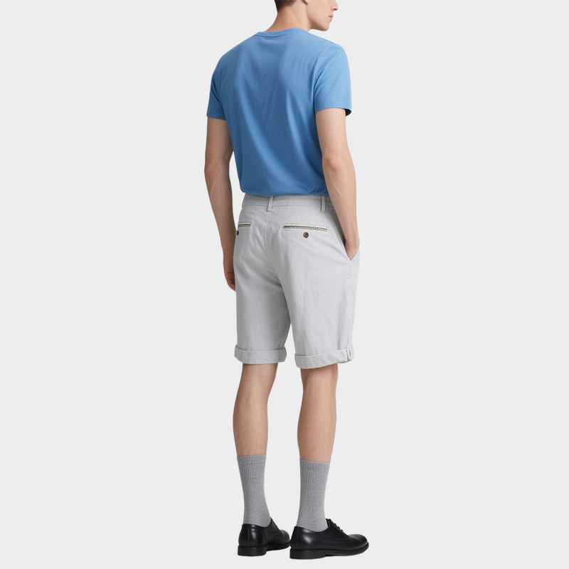 Simple Curled Hem Men’s Light Gray Twill Trend Shorts