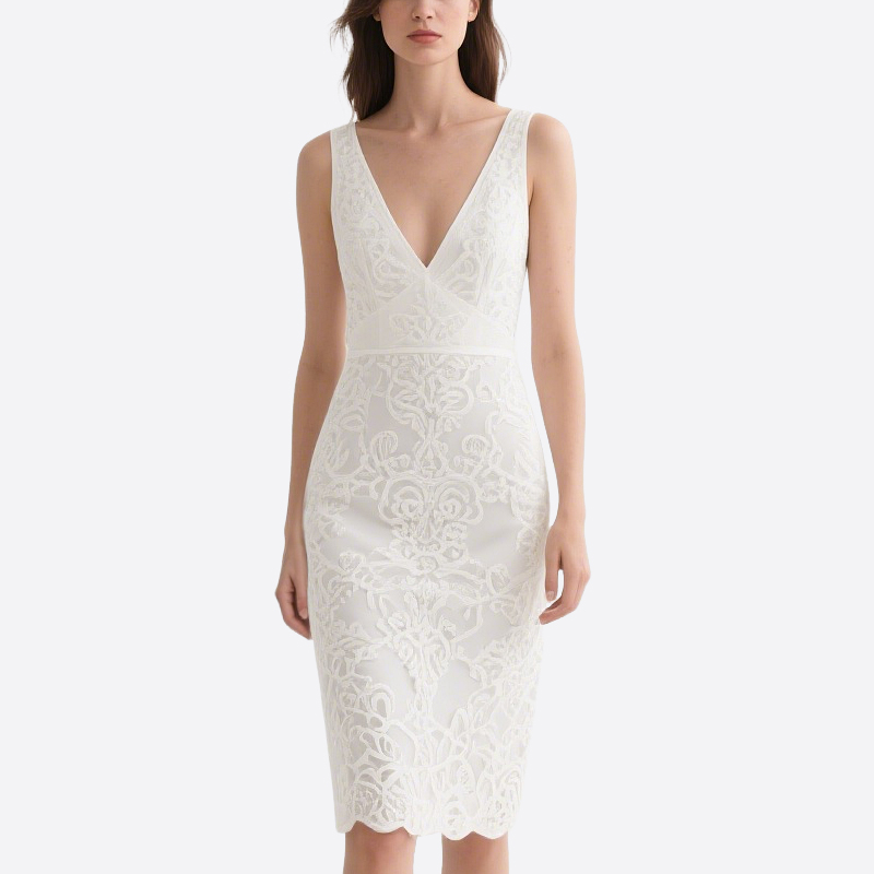 Sleeveless Deep V-neck Lace Dress Bodycon Wedding Guest Dress