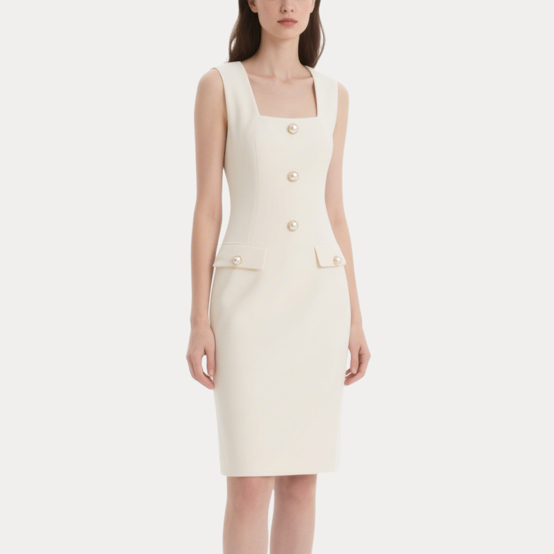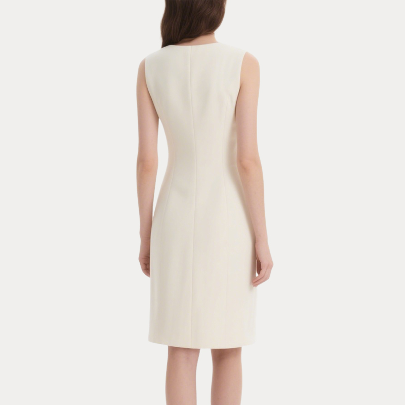 Sleeveless & Sheath Silhouette: Sleeveless design showcases arms; the sheath cut hugs curves for a tailored, professional – chic fit.