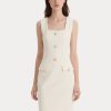 Pearl Button Detailing: Four faux – pearl buttons with gold accents add a touch of luxury and visual interest down the front.