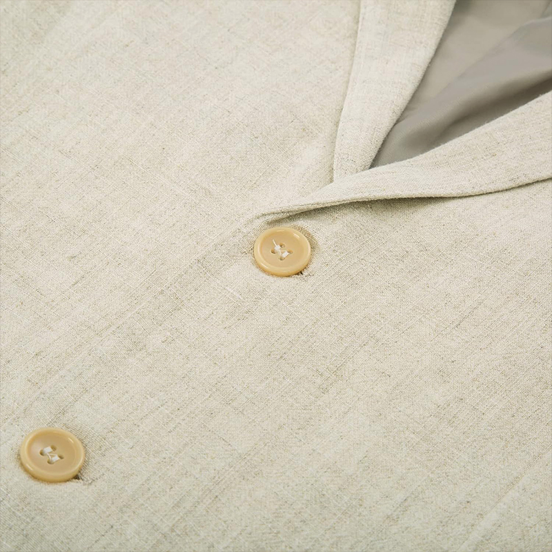 - ??Linen fabric??has good breathability and moisture absorption, making the wearer feel refreshed and comfortable in hot weather. At the same time, linen also has durability and an elegant natural luster, making the suit jacket look more upscale and refined.