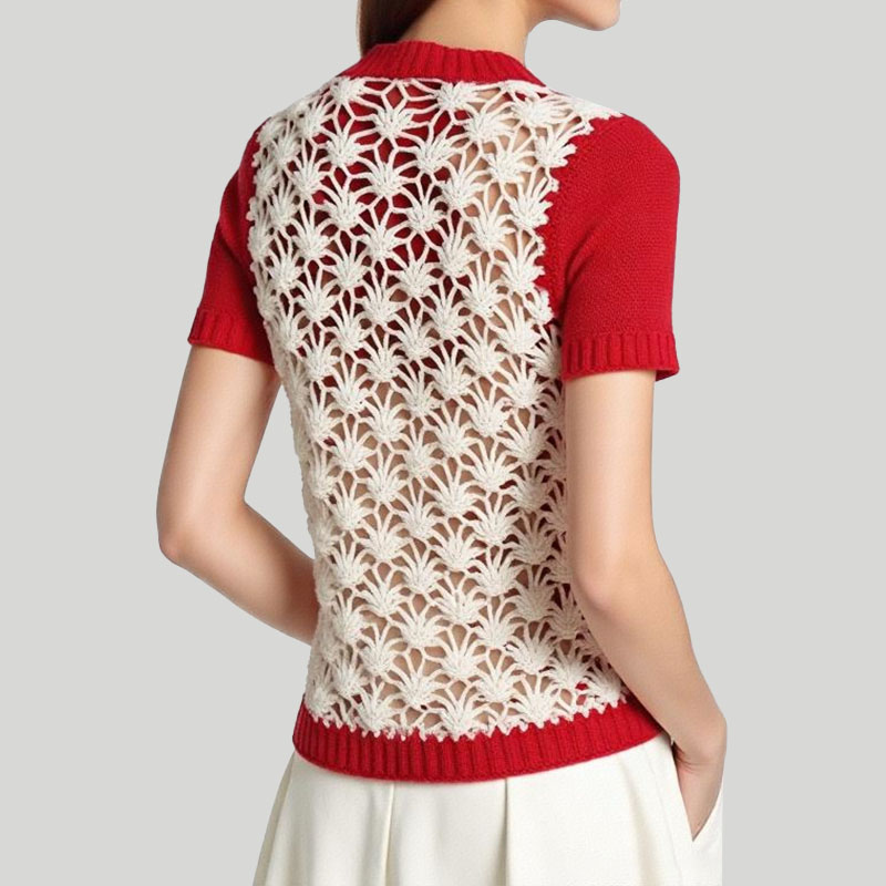 This women’s knitted short-sleeved top is the perfect combination of fashion and practicality with its exquisite design and comfortable material.