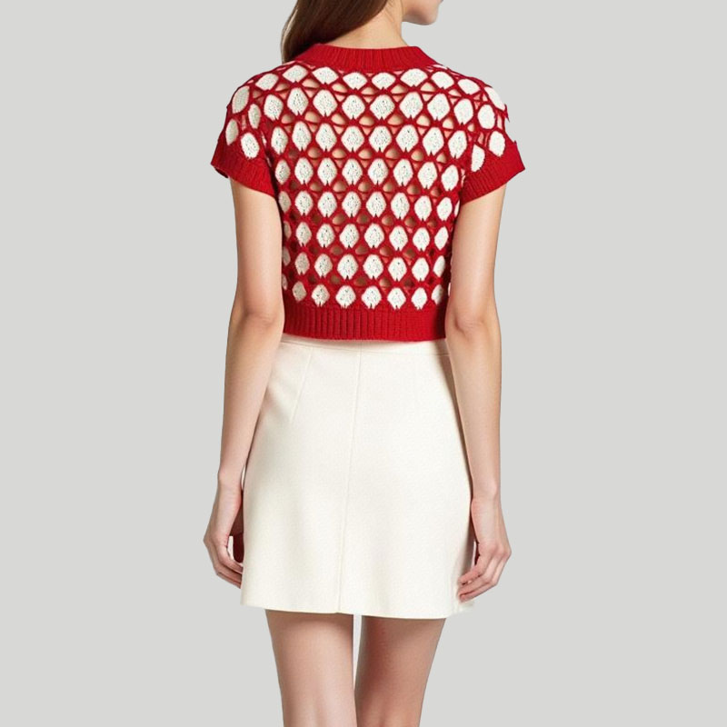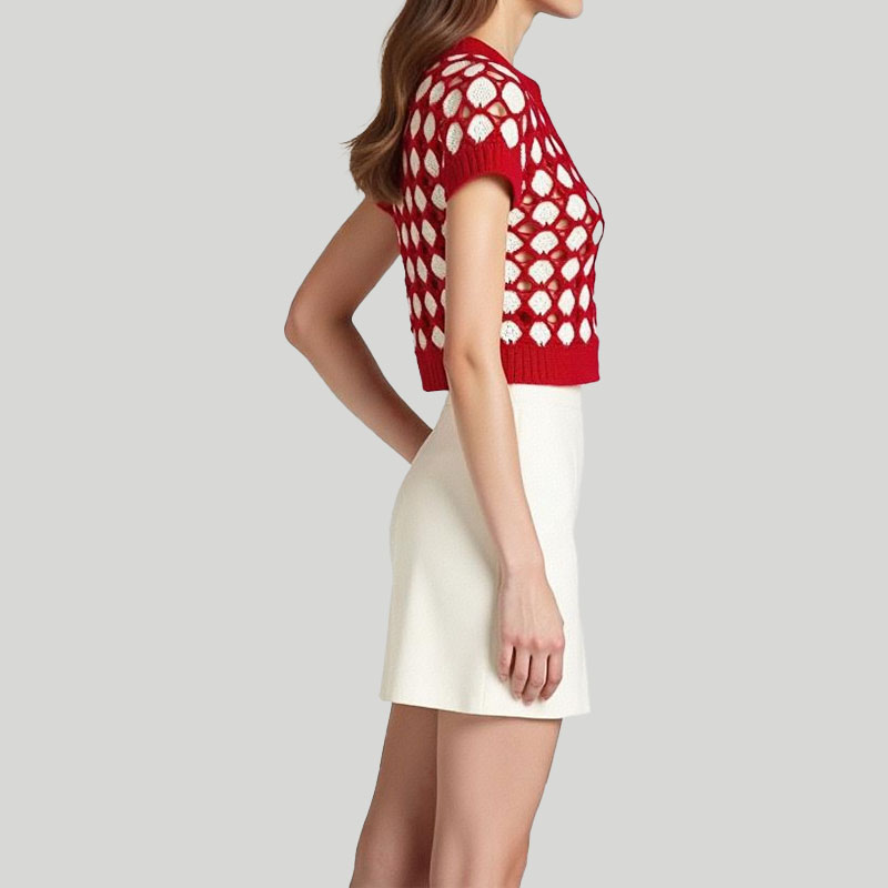 This women’s knitted short-sleeved top is the perfect combination of fashion and practicality with its exquisite design and comfortable material.
