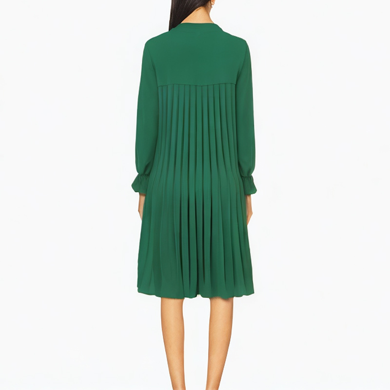 【Classic solid color design, showing simplicity and elegance】 This solid color pleated dress adopts a classic monochrome design, which is simple and generous as a whole, giving people a fresh and elegant feeling. The combination of pleated skirt and V-neck brings a beautiful sense of layering, which is suitable for various formal and casual occasions, showing the unique taste and charm of women.