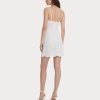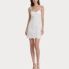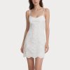 Texture: Silky – soft dress fabric with intricate floral embroidery and a scalloped lace hem. The embroidery has a tactile, romantic feel, enhancing the dress’s feminine charm.