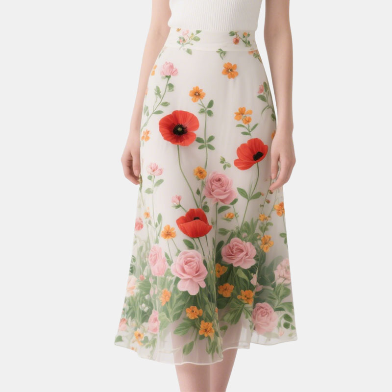 Alluring Design: Features an eye – catching floral print with red poppies, pink roses, and small flowers. The print layout adds natural elegance.