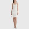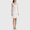 Square Neck Ribbed Dress Flounce Hem Knit Dress