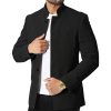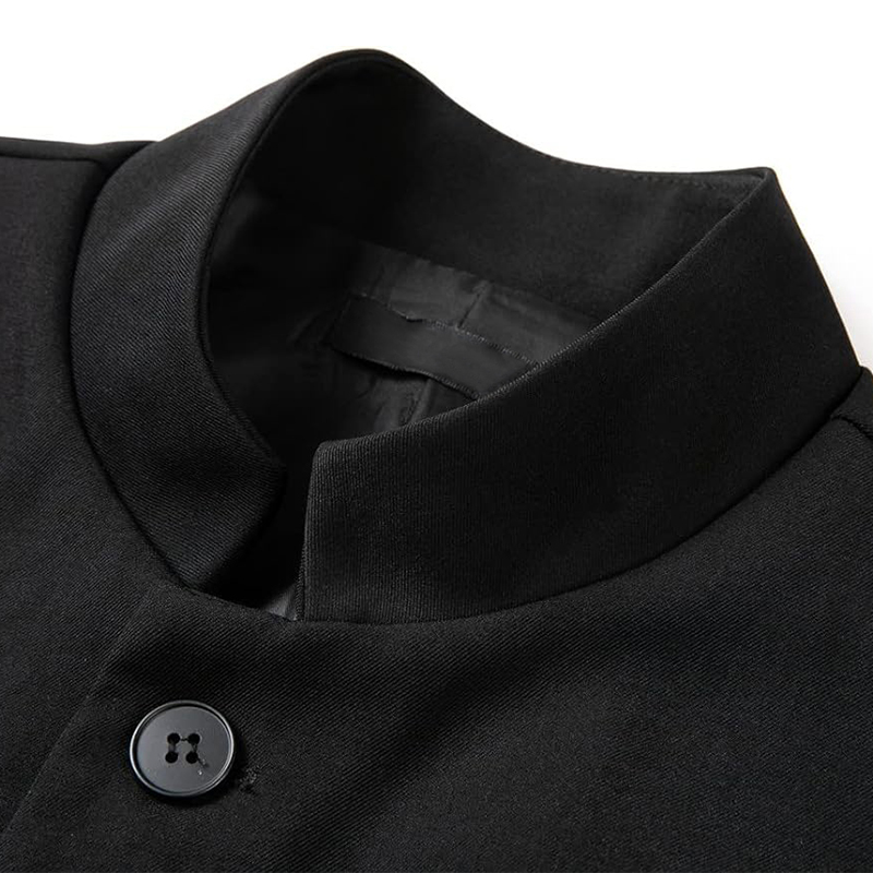 - 2. Classic design: The stand collar and padded shoulder design add structure and formality to the jacket, suitable for formal occasions. Side pockets and chest pockets provide practicality and convenient for carrying necessities.