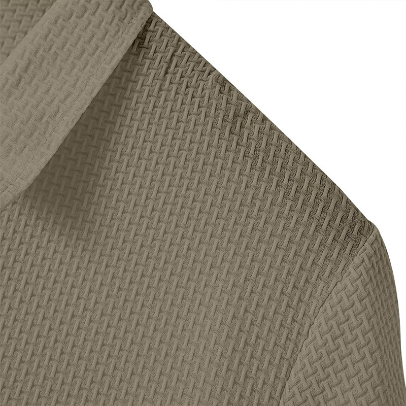 The polo shirt adopts lapel design and jacquard design. The jacquard process is used to make the surface of the clothes textured and three-dimensional, increasing the visual effect and quality. The button and lapel design are easy to put on and take off, and the simple lapel is suitable for a variety of formal occasions.