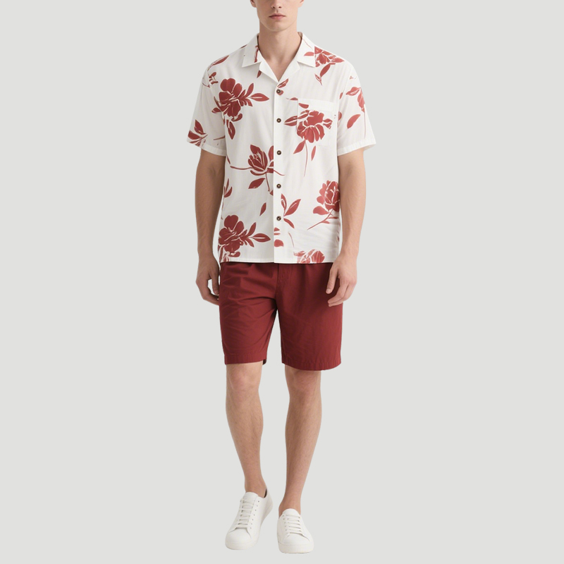 Summer Romantic Red Floral Men’s Top and Shorts Set