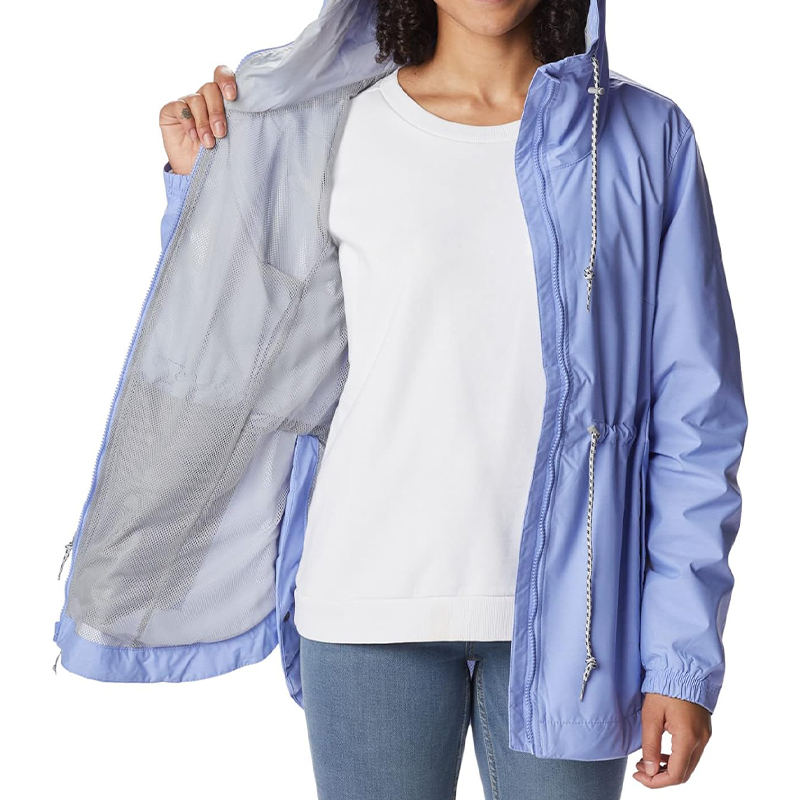 The jacket adopts a hooded design, with a drawstring elastic waist, irregular hem and mesh lining. Suitable for various outdoor sports, it can provide additional protection and shelter when needed, and adapt to different weather and environmental conditions.