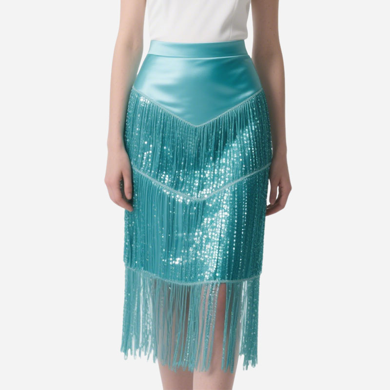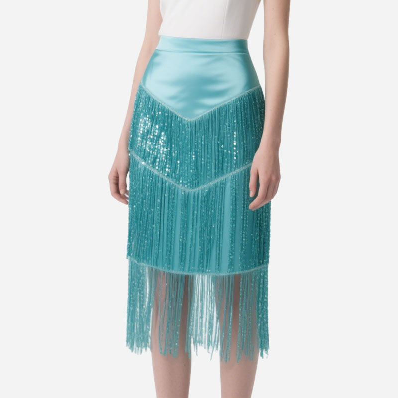 Dynamic Fringe Detail: Layered tassels along the hem add playful motion, transforming static fabric into a kinetic focal point.