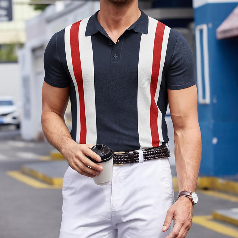 ?This classic short sleeve design has a contrasting striped pattern, short sleeves, and ribbed hems and cuffs, which is very suitable for wearing in spring and summer.