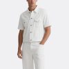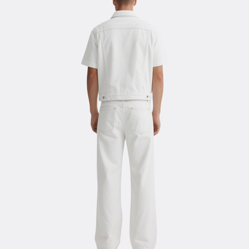 Short-Sleeve Denim Jacket: Classic button-front design with ribbed collar, chest flap pockets, and tailored fit for a sleek, modern look.