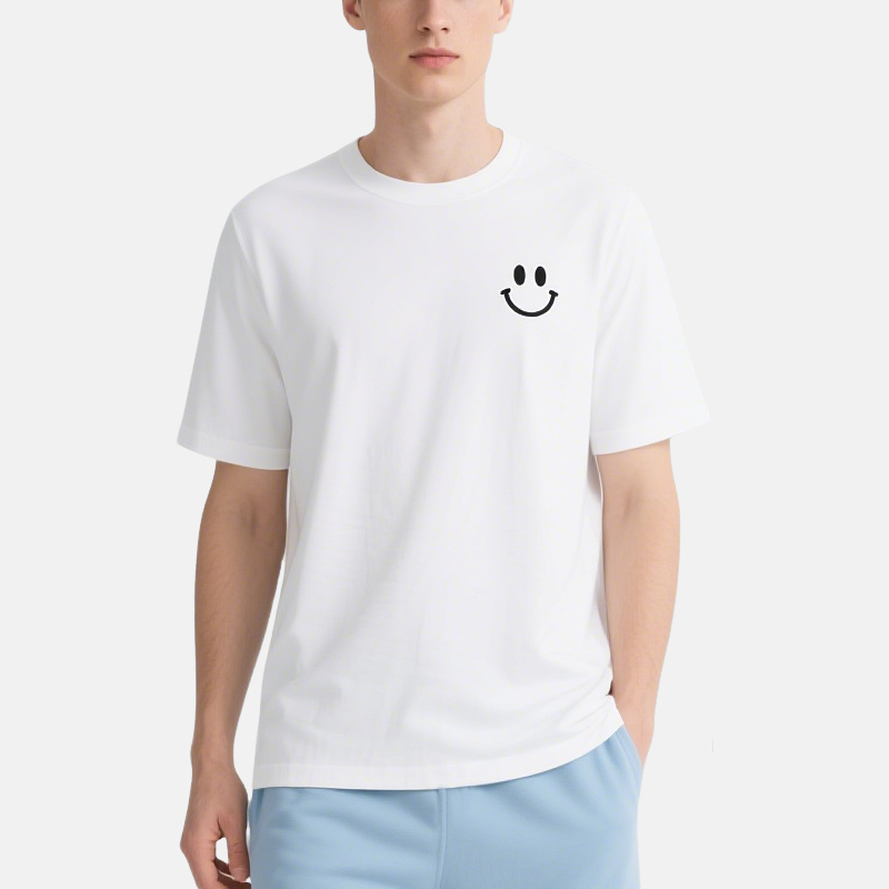 White Small Smile Tee & Light Blue Shorts Set – Men’s Summer Casual Outfit