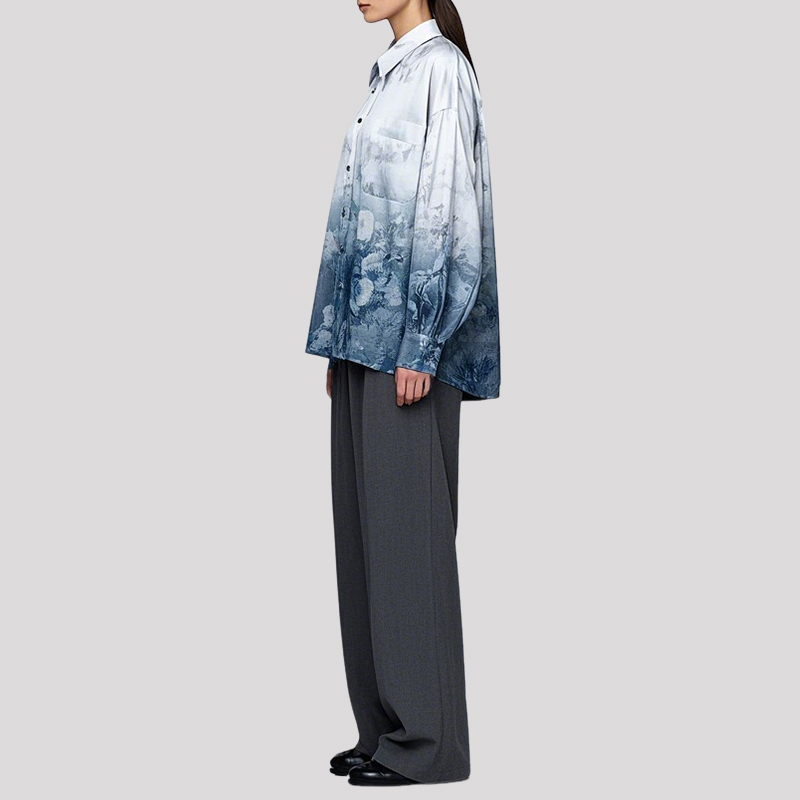 Women′s Button Down Long Sleeve Casual Shirt Loose Fit