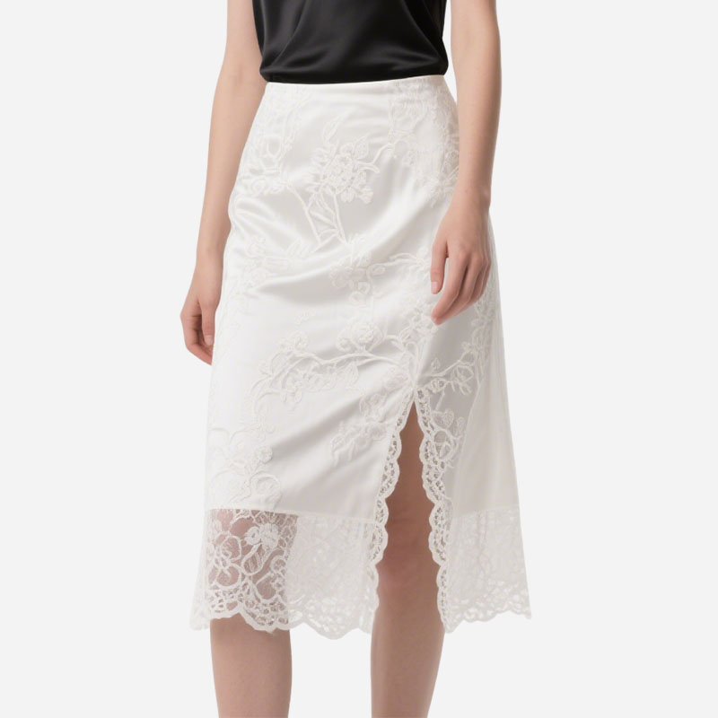 Exquisite Design: This midi skirt oozes elegance with its intricate floral embroidery, exuding romance. The delicate lace adds vintage charm, while the high – slit design is both modern and alluring, enabling easy movement.