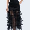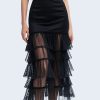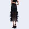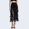 Women Skirts Sexy Party Mesh Sheer Ruffle Hem Skirt